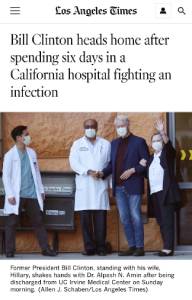 - Los Angeles Times: Bill Clinton heads home after spending six days in a California hospital fighting an infection