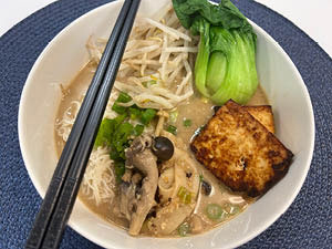 Umami is considered the fifth taste in food alongside sweet, sour, salt and bitter. It translates to "pleasant savory taste" and has been described as brothy or meaty. This vegetarian ramen recipe — loaded with bok choy, bean sprouts and mushrooms in a Japanese broth called dashi — serves up umami in abundance.
